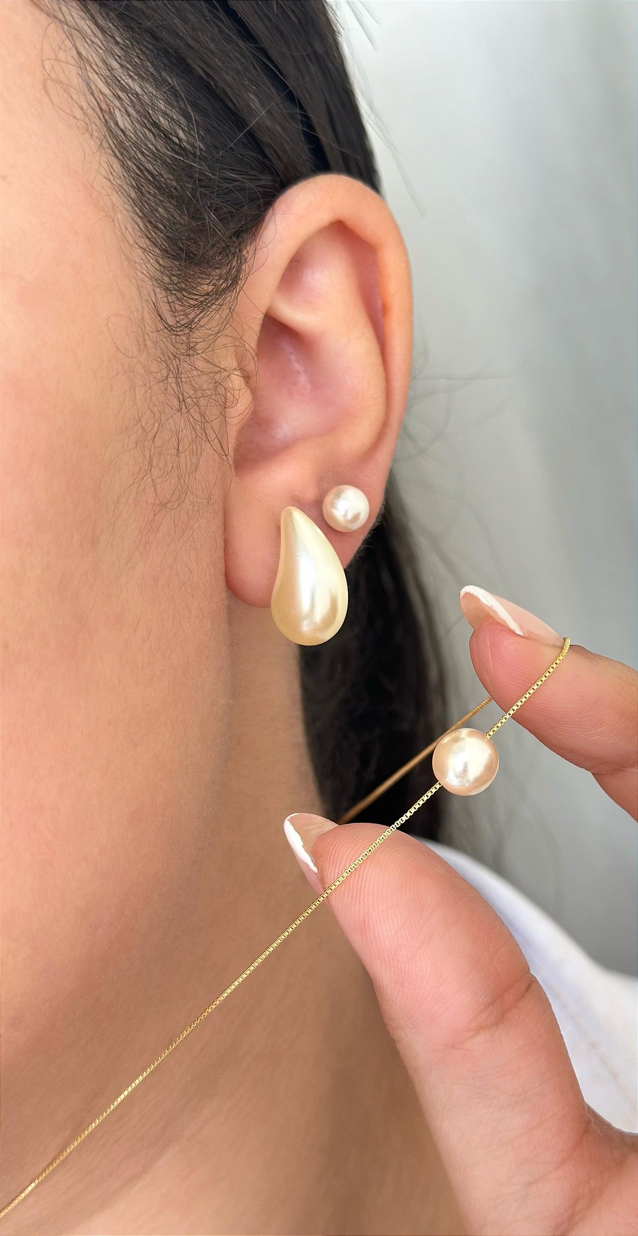 O Brinco Pérola - Aretha é aquele básico que sempre vale a pena ter no porta-jóias. É ótimo para fazer composições, para segundo e terceiro furo, atende uma série de idades e dá um toque de jovialidade.