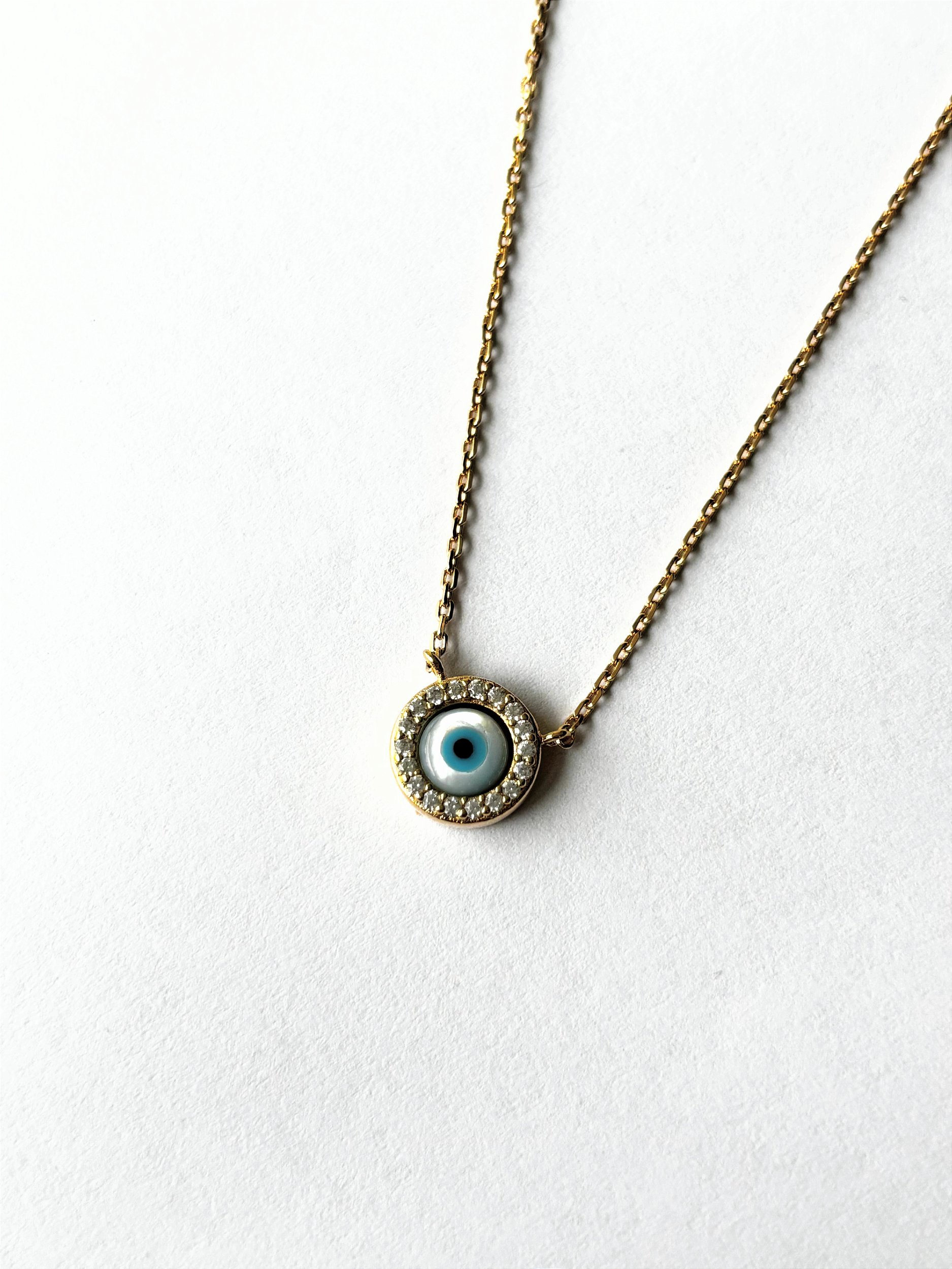 O Colar Olho Grego Paola é um amuleto de proteção transformado em joia sofisticada. Com pingente de madrepérola e delicadas microzircônias cravejadas, traz equilíbrio entre significado e elegância. Uma peça atemporal que combina espiritualidade, modernidade e sofisticação, perfeita para quem deseja um toque especial em qualquer produção.